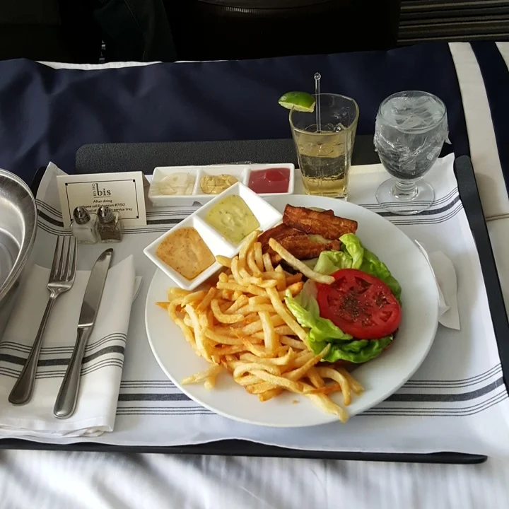 ROOOOOM SERVIIIIIICE! Bacon cheesburger, fries and not one, but FIVE dipping sauces to choose from. I can get used to this...